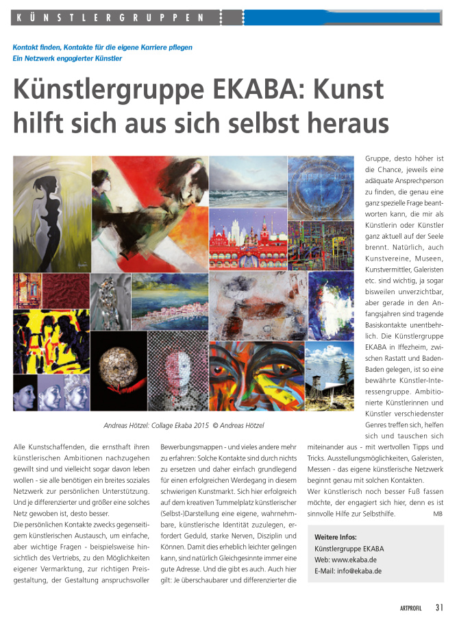 ART Profil Mitglied Künstlergruppe EKABA Bericht Art Profil 2015 Magazin für Kunst, Heft 108