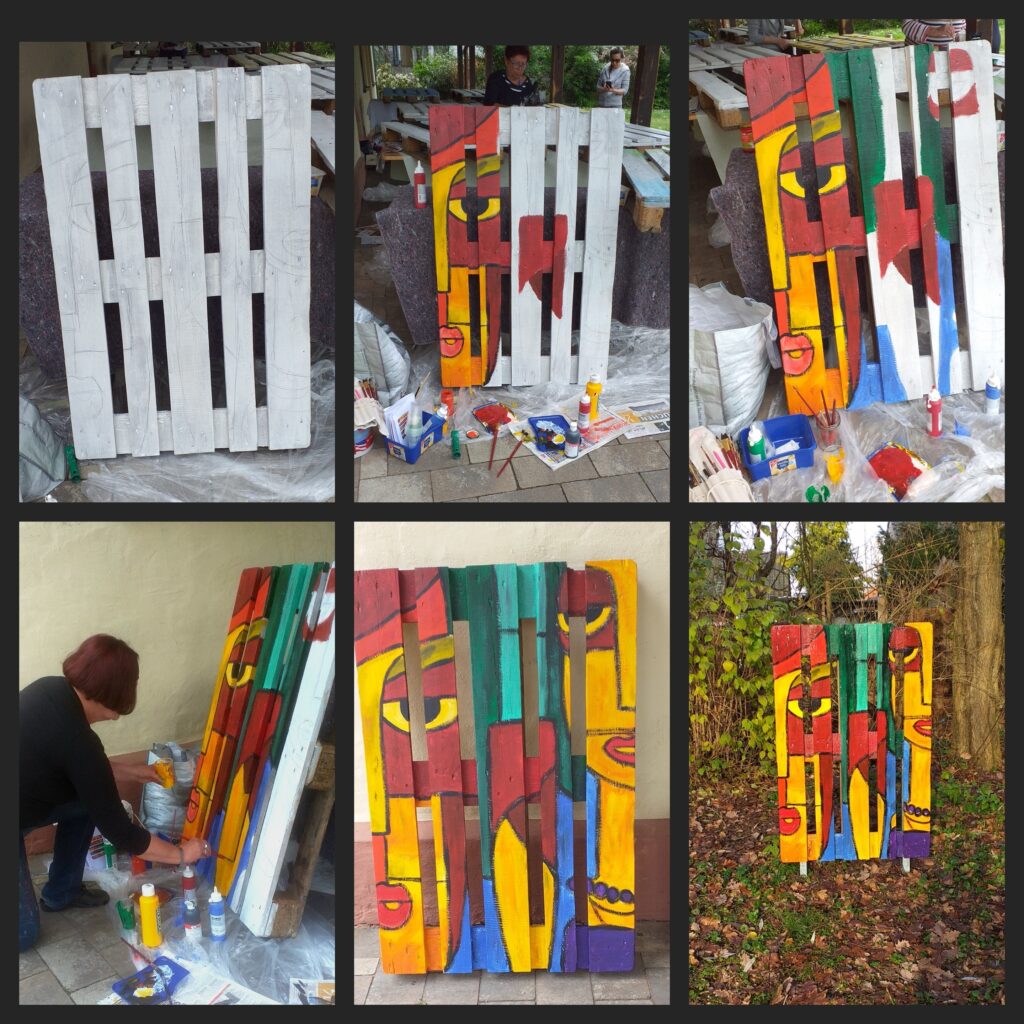 Kunstaktion mit Kreativ Kreis Muggensturm 2023: Paletten bemalen